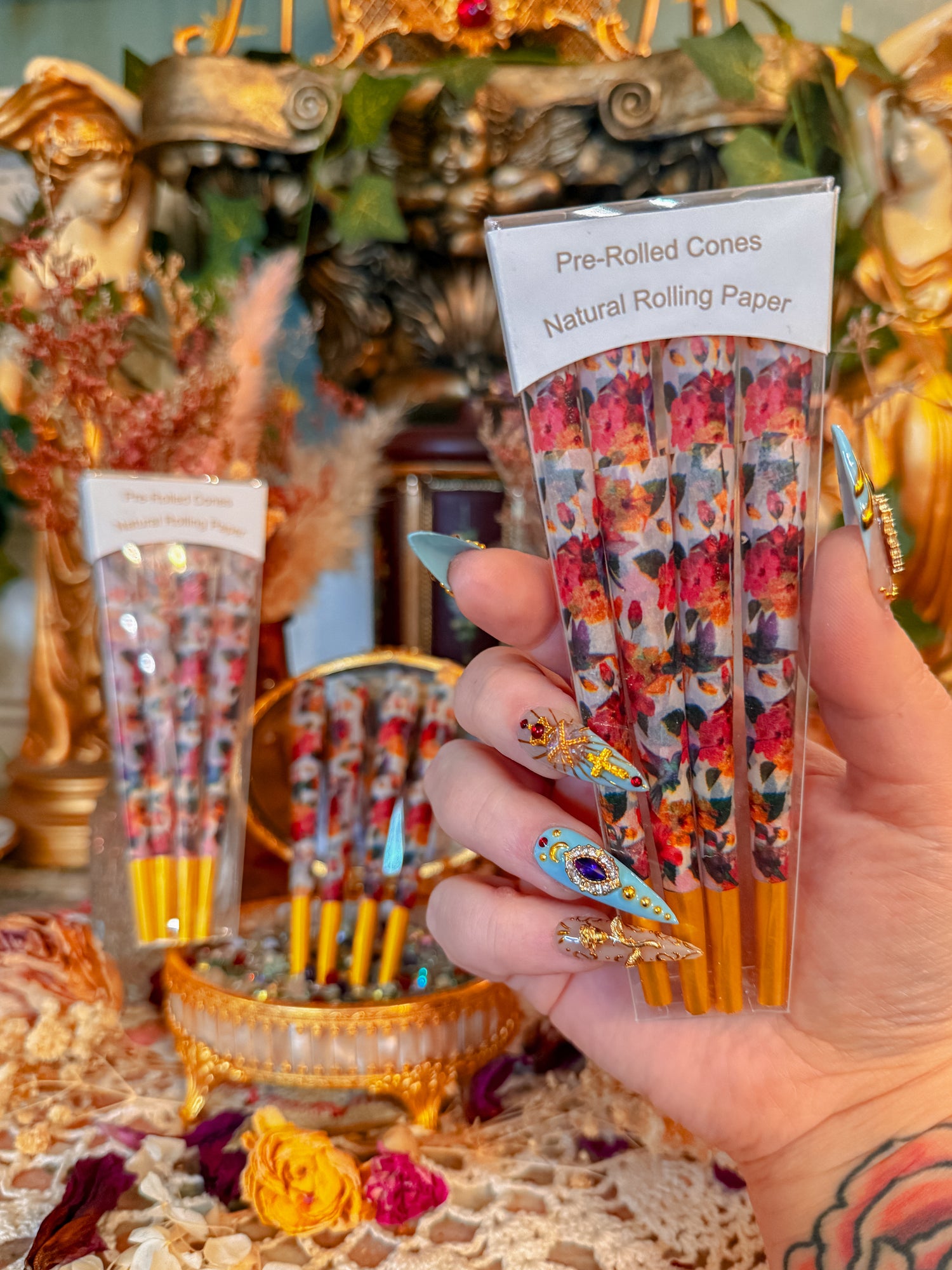 I’ve been looking for a rolling tray for a while but none of them caught my eye like this one did. It’s so ethereal and gorgeous even at first glance. Then you get to notice all the little details that make it even more enchanting. My favorite part of my collection so far!
