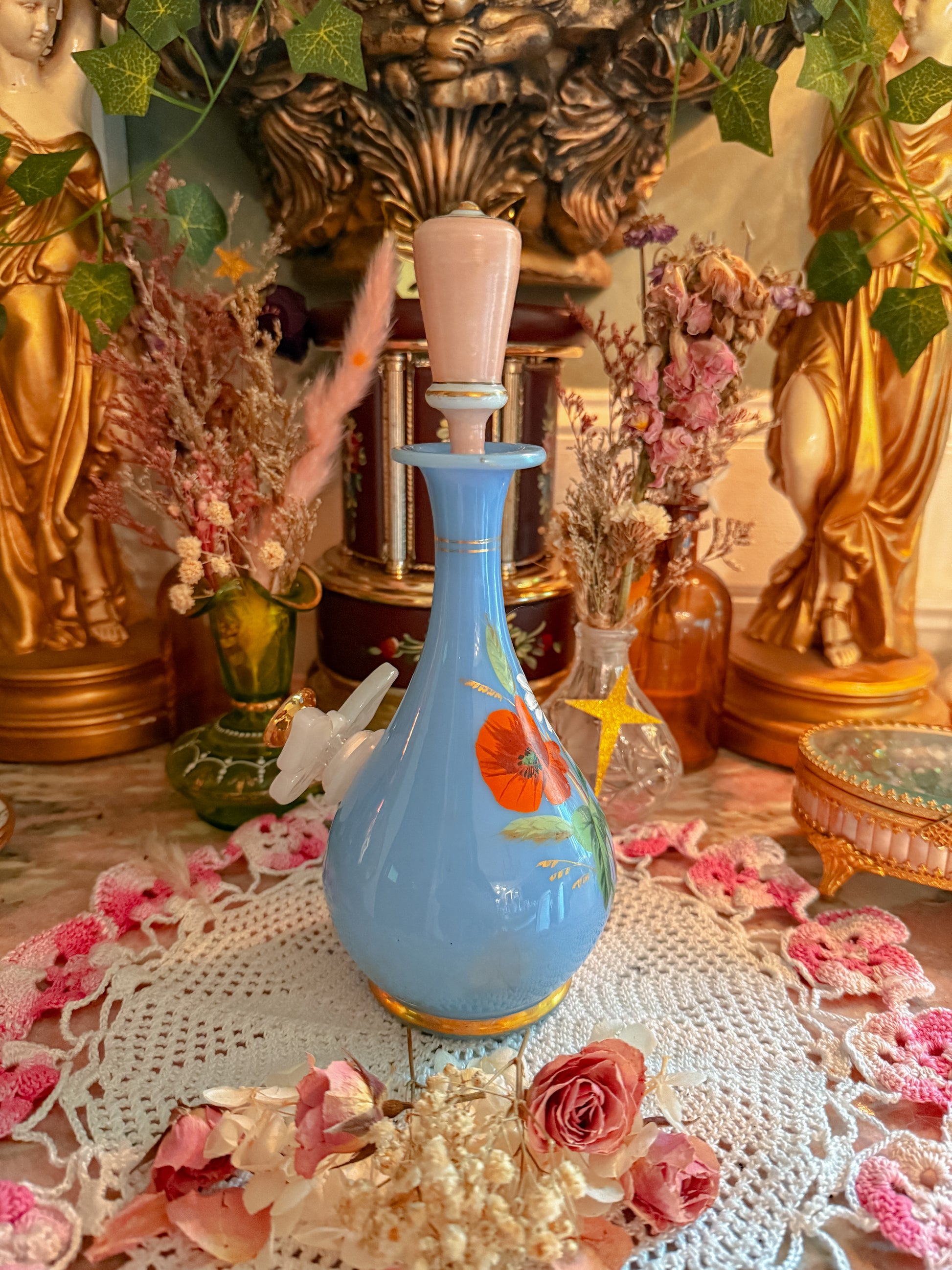 Guys I’m in LOVE with this Bristol glass piece!!! Made in England in the late 1800s early 1900s. Hand painted. I cannot get enough of Bristol glass. It’s seriously luxury. Very similar to opaline. It’s super smooth making your hit even smoother. Just perfection! And I love the pink topper 🥹