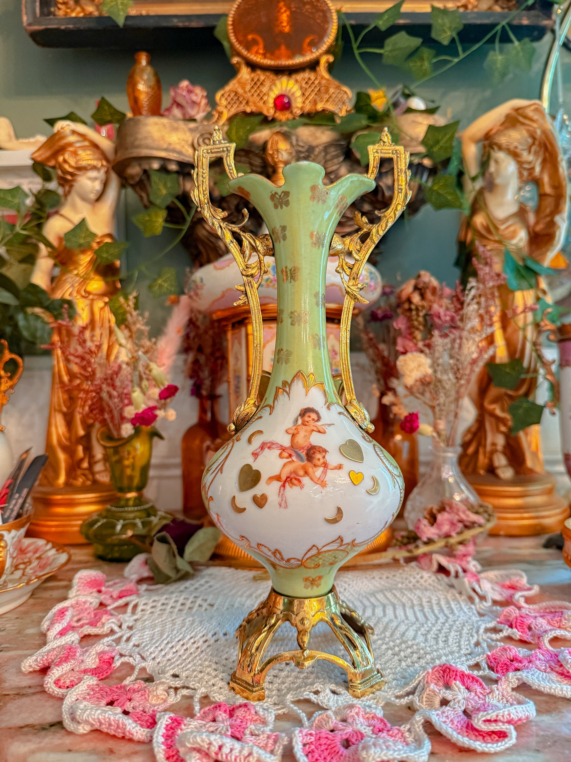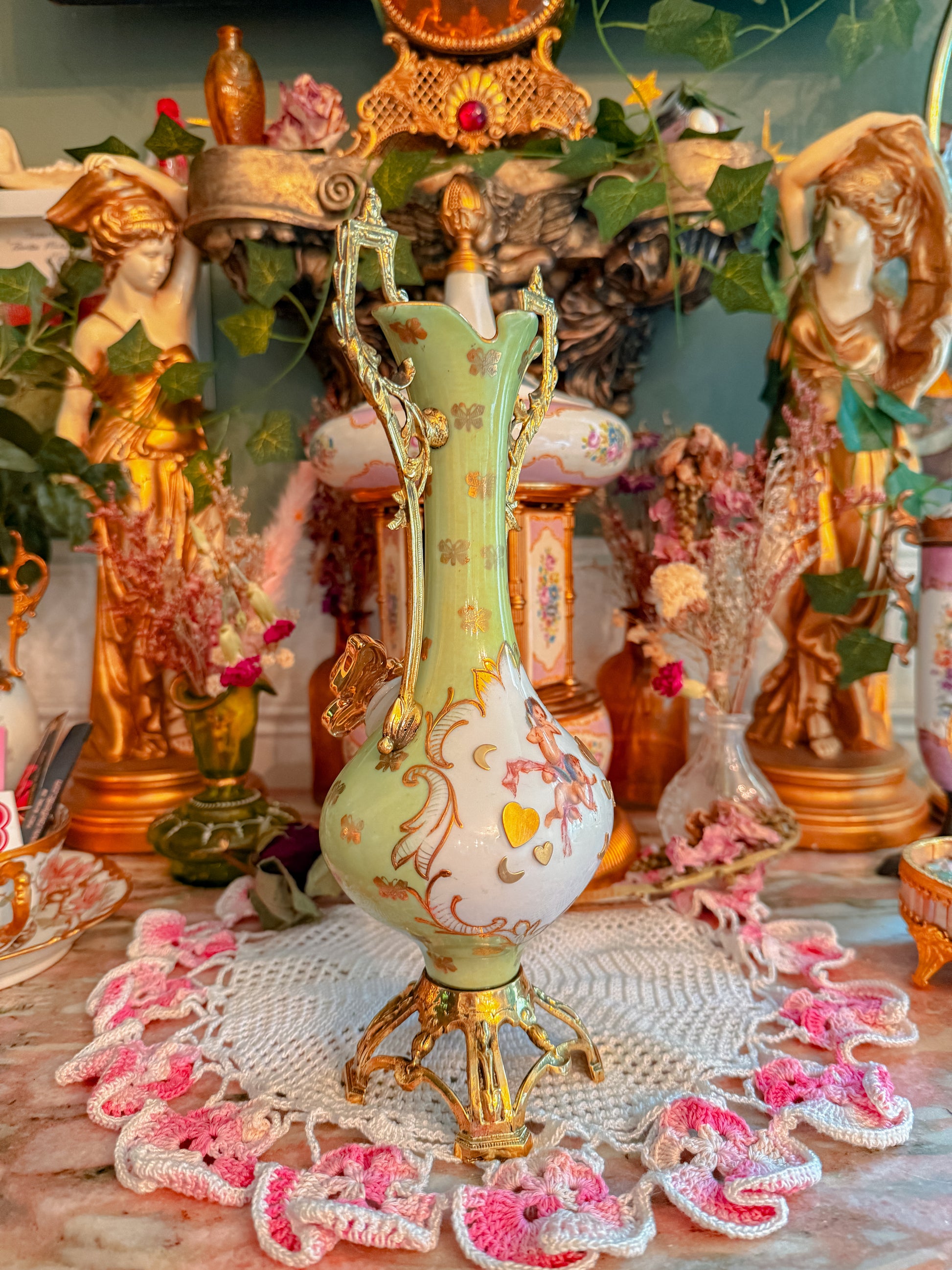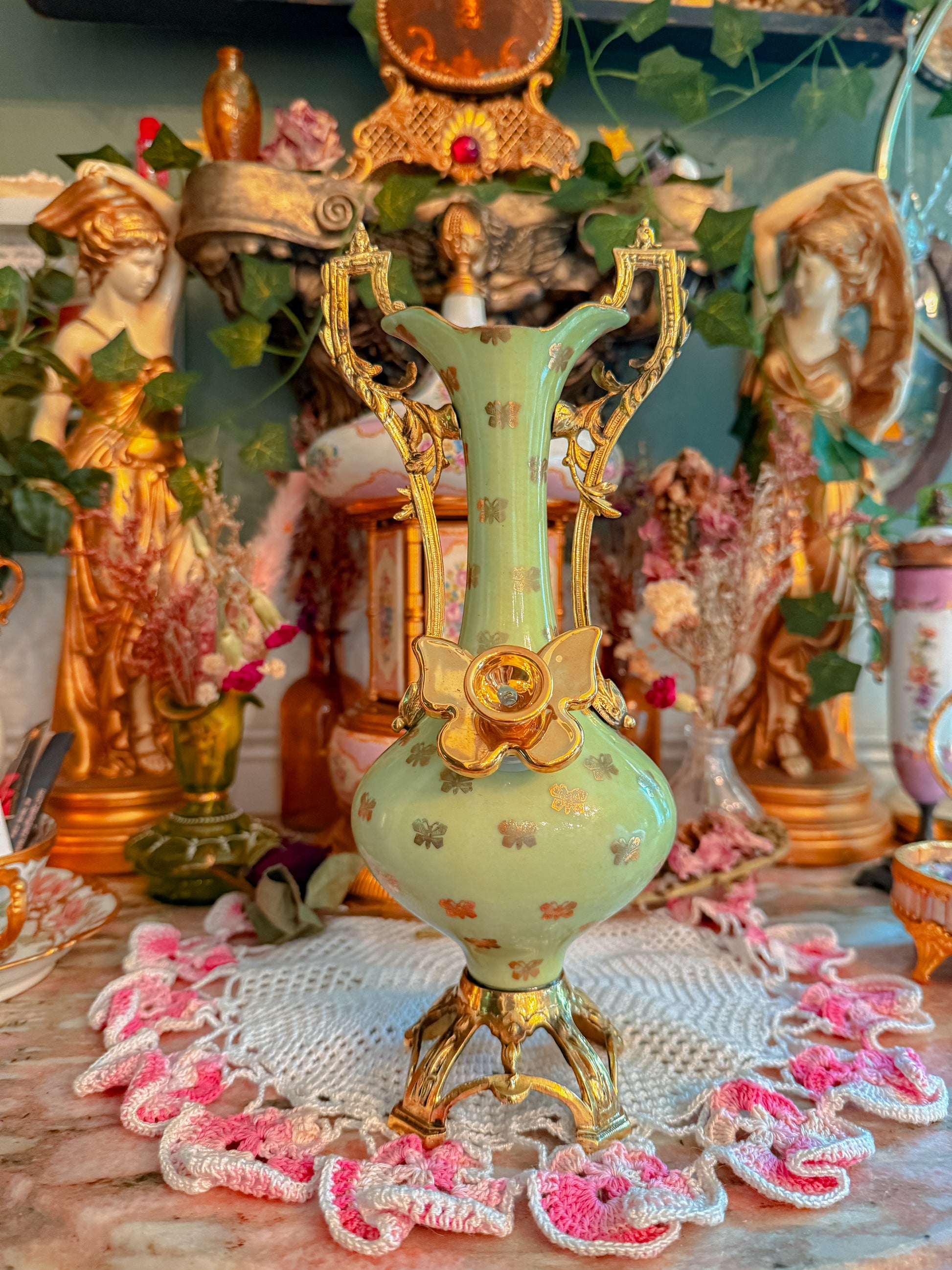 This baby is serious royalty! Made in England in the late 1800s. Her handles are BRASS. Her base is BRASS. You never see a porcelain and brass combo. Just pure luxury. Oh and yes she’s very easy to hit and despite how it may look it’s very comfortable. The handles are wide enough they don’t get in the way. Yall have to trust me. She functions amazing. Also! I’m obsessed with the brass add ons I added and my 22k gold custom bowl. This is a queens piece. Seriously.