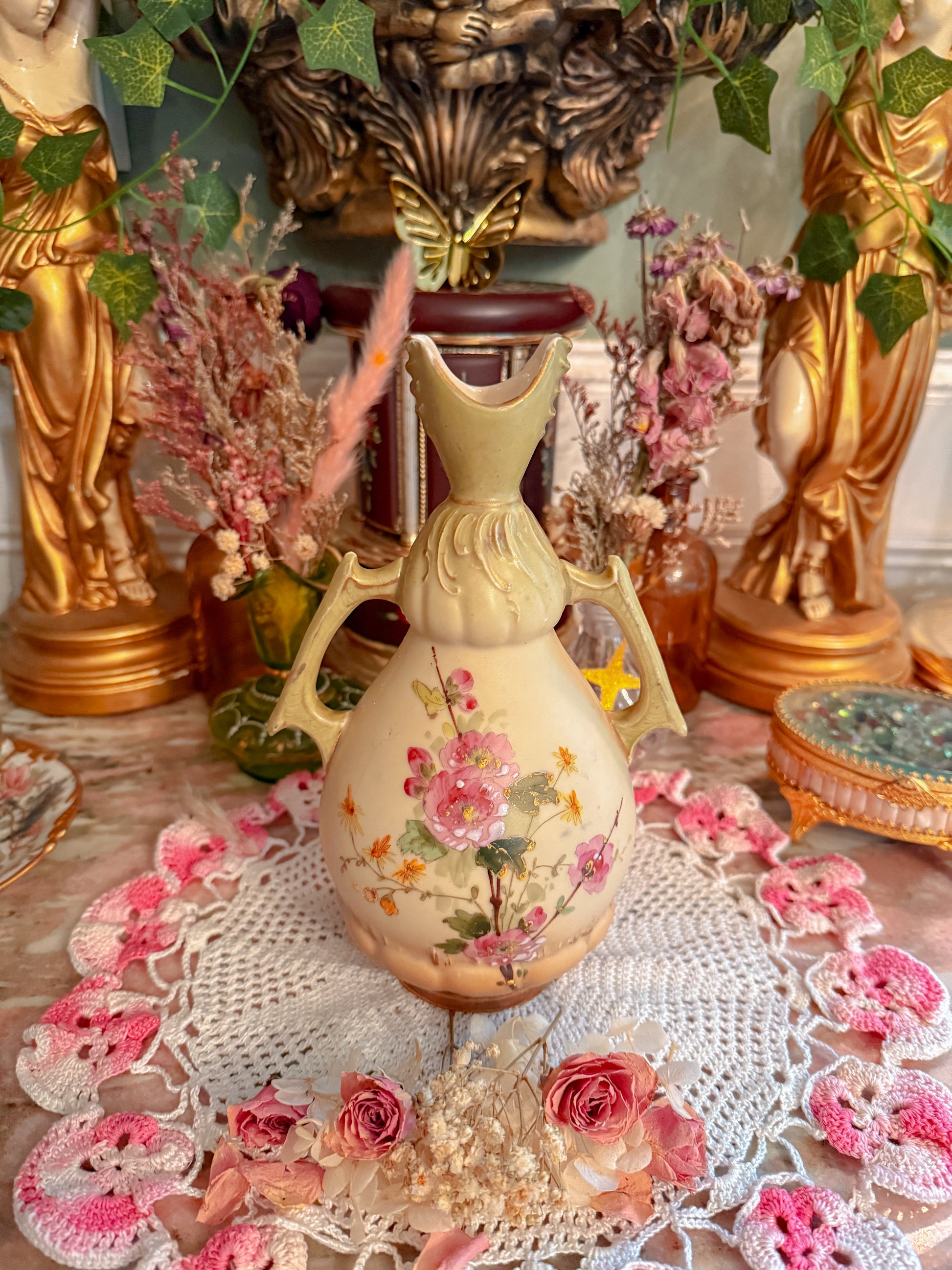 Guys… okay… tell me this piece doesn’t remind you of a praying mantis? Like I’m obsessed…. This is a Ernst Wahliss beauty made in the late 1800s early 1900s. Porcelain. Hand painted. And let me tell you her mouth is amazing! Fits like a glove. Don’t let her fool you. This piece is so insanely unique. One of a kind.