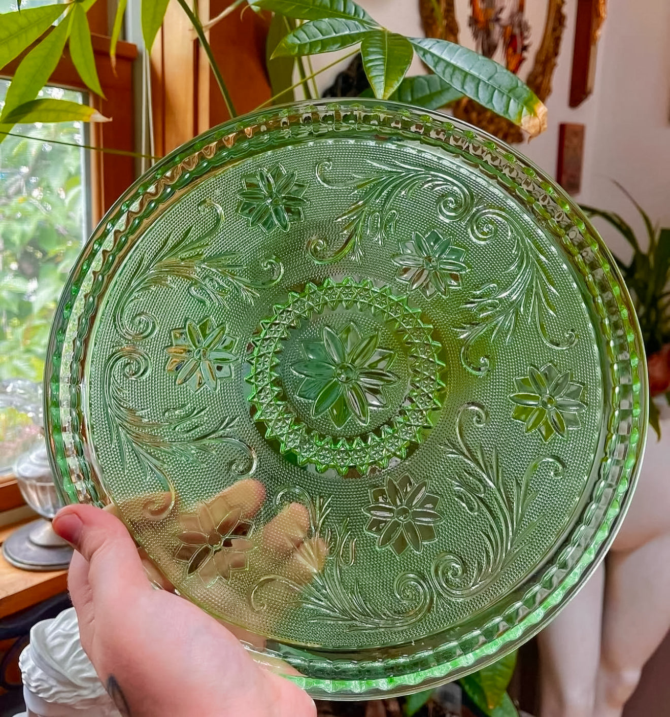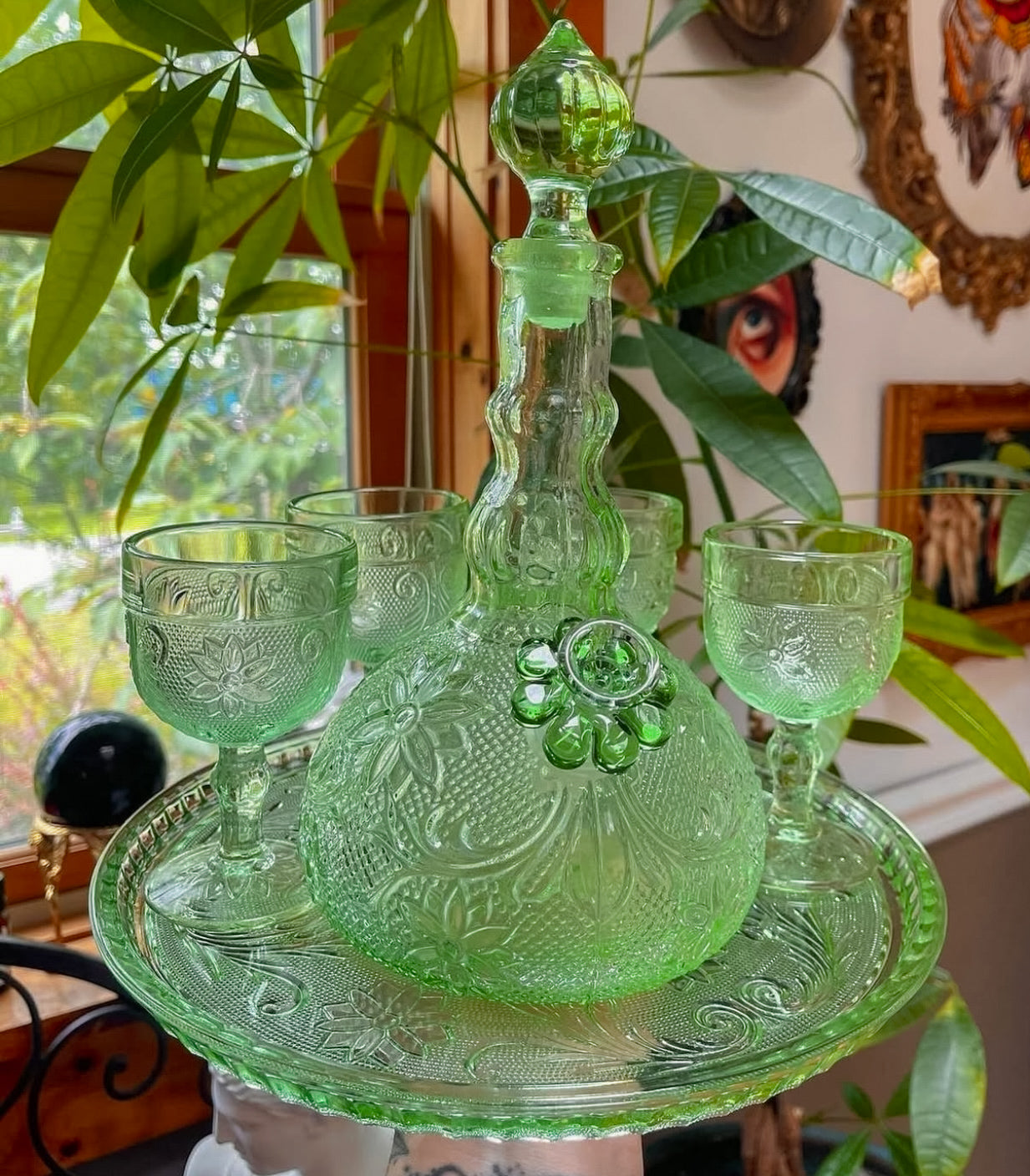 The most beautiful green tiara set! Made by indiana glass. This stunning set is not uranium. Just the most beautiful shade of green 💚