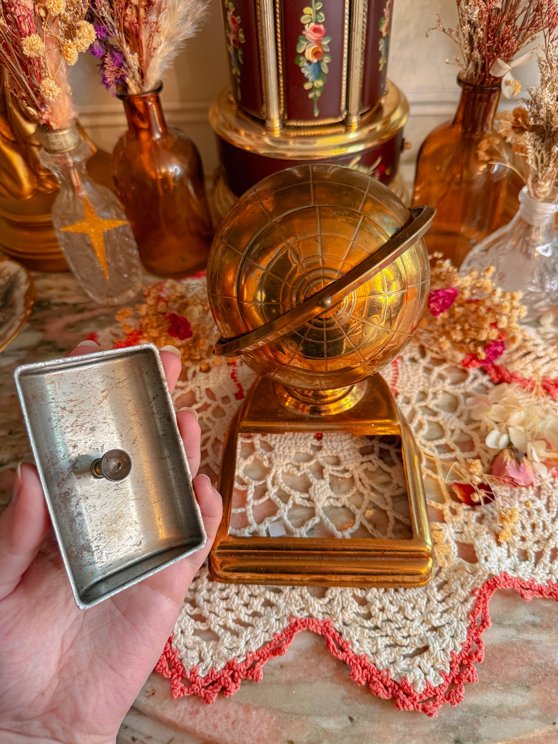 Wow. I’ve never seen this piece with an ashtray as well. This piece is way too cool. Made of solid brass. Sturdy. In great condition. Made in the 1940s-1960s. Holds a lot of joints. Clicks open and shut perfectly. Just an iconic piece that’s sure to impress!