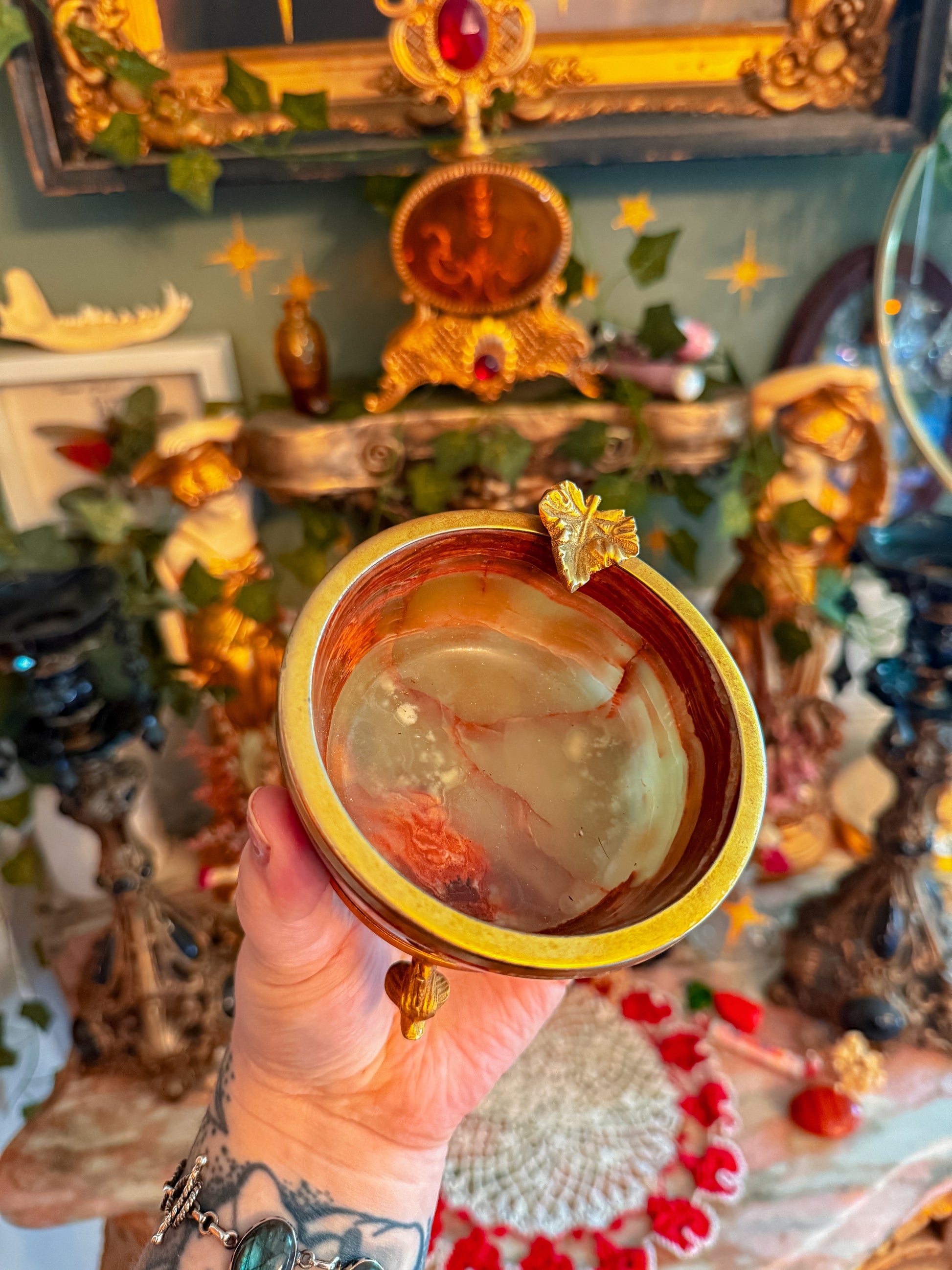 Onyx stone and gilted metal ashtray✨