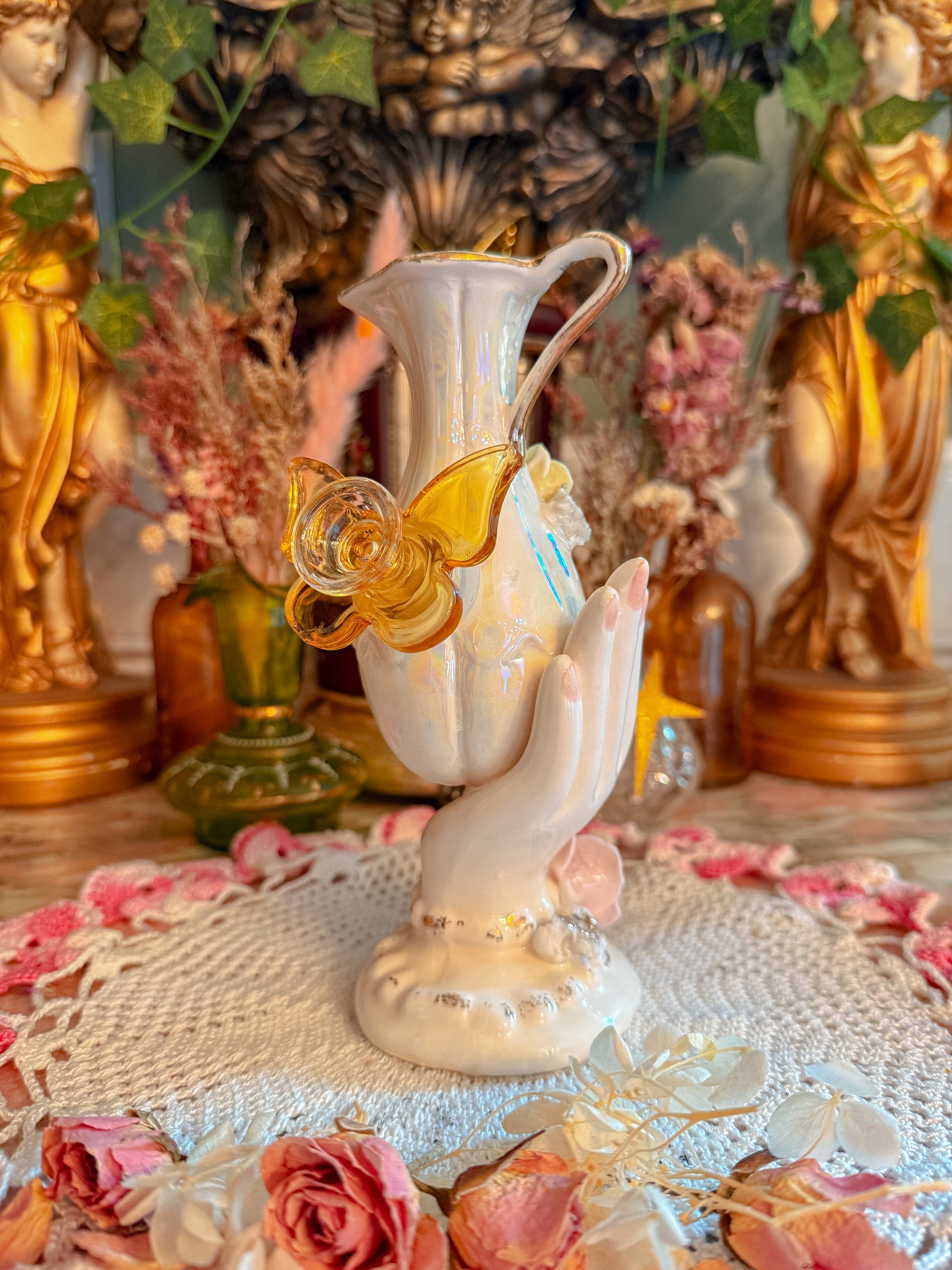 Are you kidding me? I’ve never seen anything like this piece. And I’m still not over it. How unique is she? Like so unbelievably cool. She’s very thick porcelain. Pearlized. And just perfect.